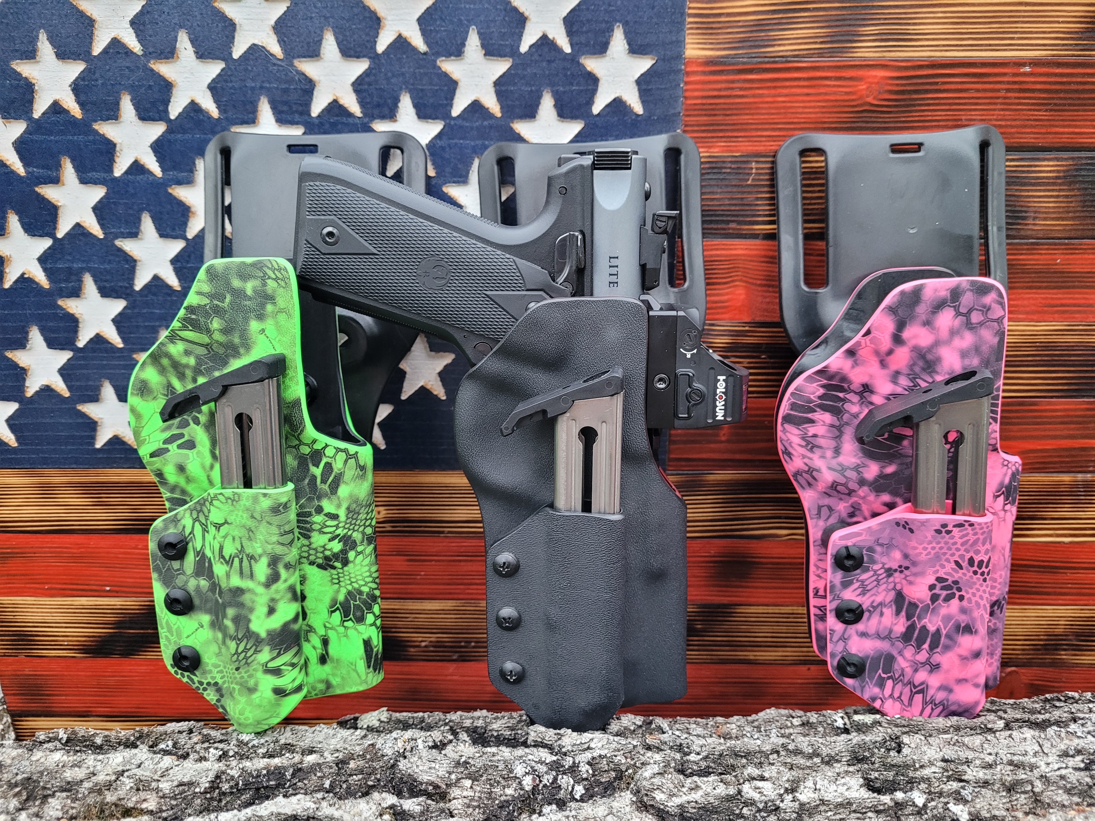 We offer a wide array of stock holsters and Pre-made Extreme Duty Holsters there, for a multitude of different gun types. For beautiful, handcrafted carry options and a wider array of holster options!